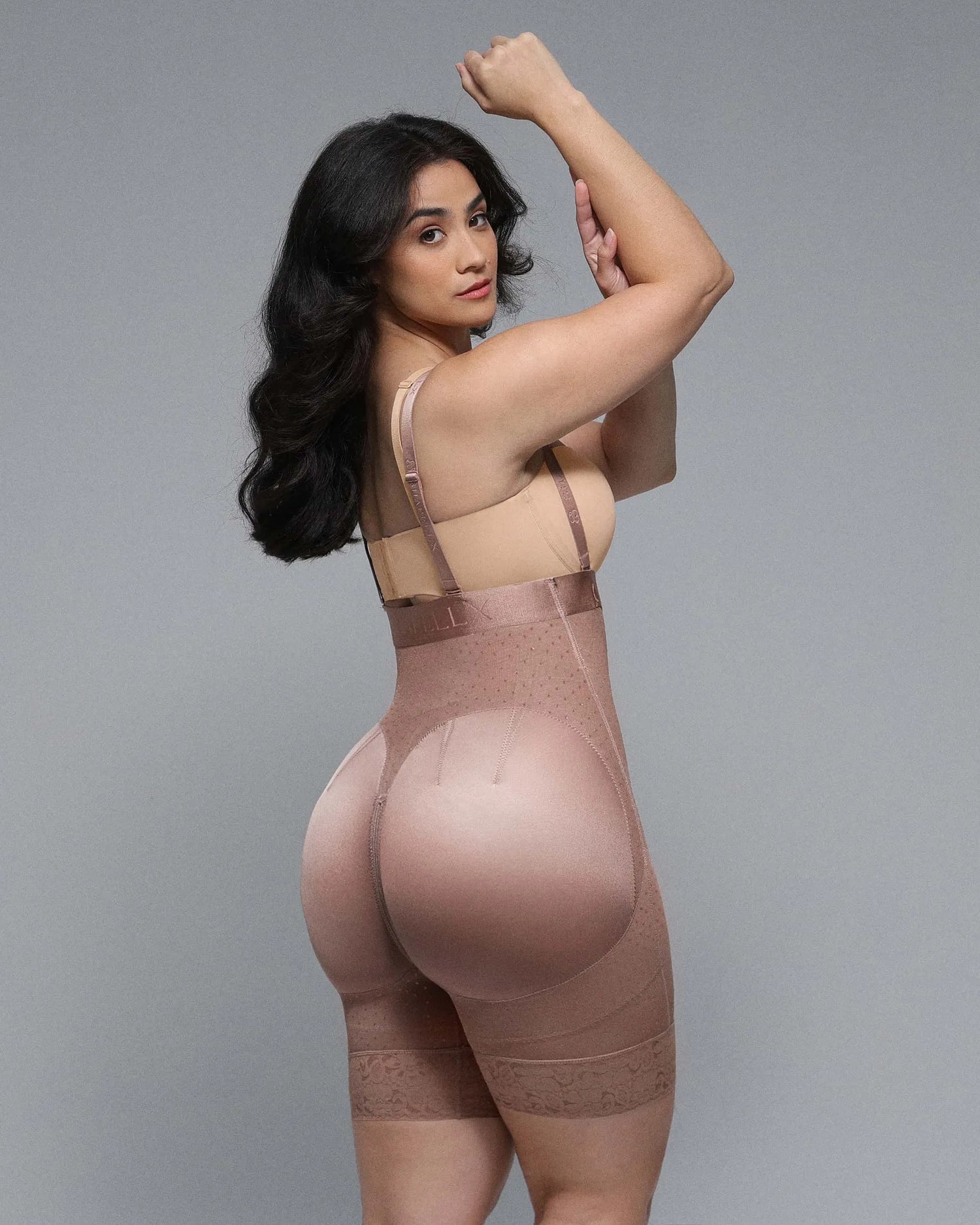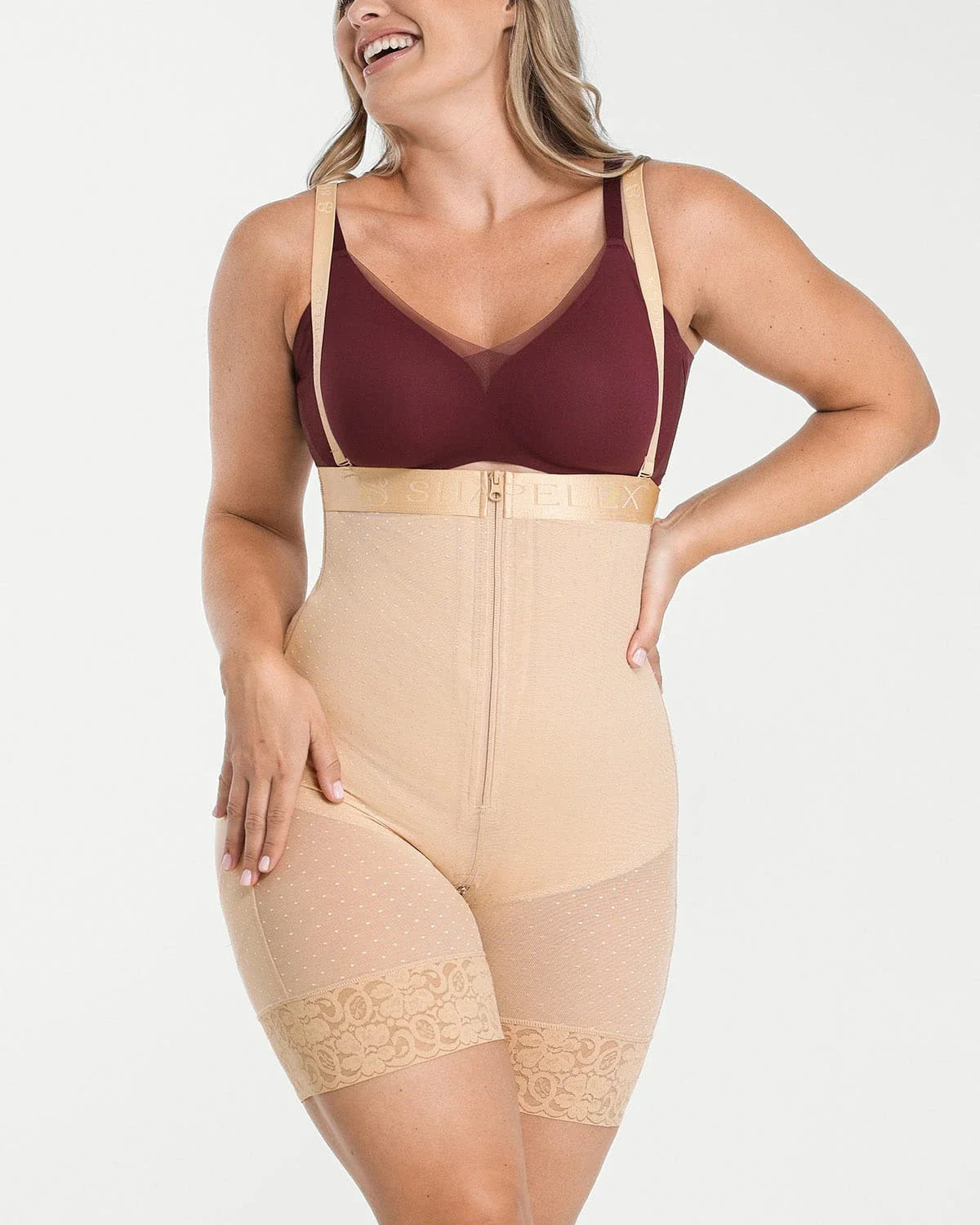 • Built-in waist cincher with adjustable hook-and-eye closure for optimal shaping.