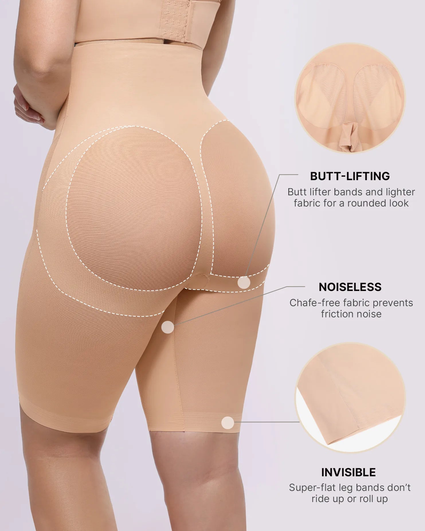 • Lifts and enhances your natural curves for a sexy peach shape.