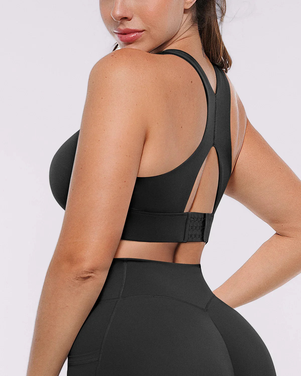 • 3-row hook-and-eye closure adds support for a custom fit.